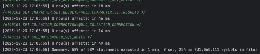 mysqldump를 이용해서 데이터를 전부 이관하는 데 1분 9초 정도 걸렸다.