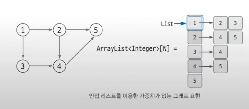 정의) ArrayList로 그래프를 표현