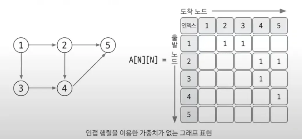 1에서 2로 향하는 에지를 1행 2열에 1(있다/없다)을 저장하는 방식으로 표현