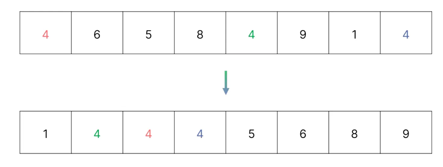 안정 정렬(Stable Sort) : 동일한 값들은 정렬 전의 위치 유지