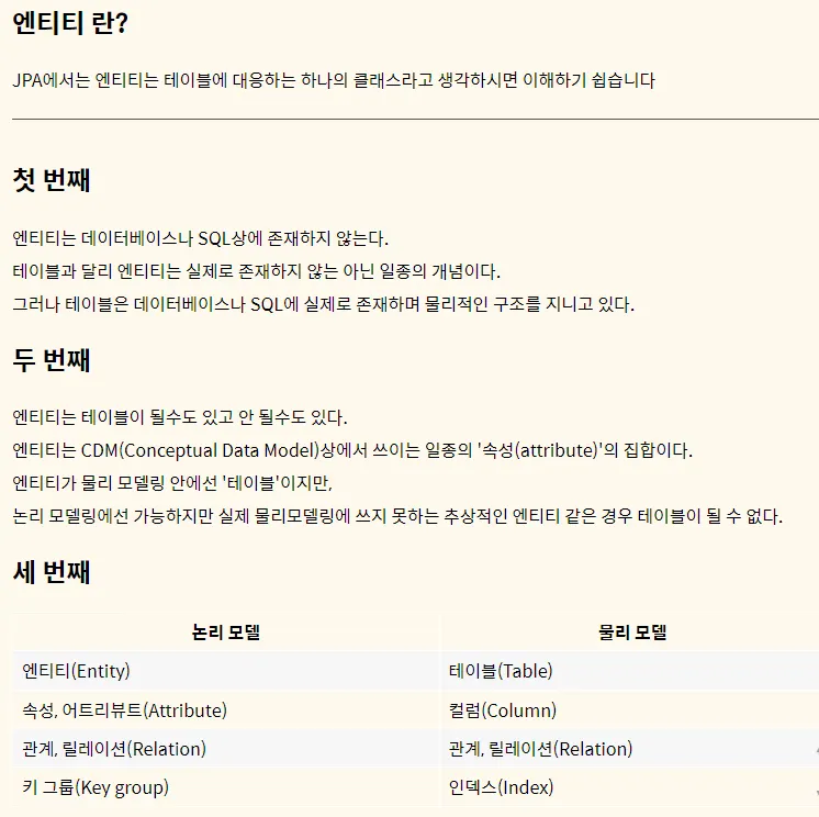 정리) @Entity만 사용할 경우 자동으로 Entity+Table 기능을 수행하고 @Entity + @Table 을 따로 사용하면 각자 설정 값에 따라 작동함.