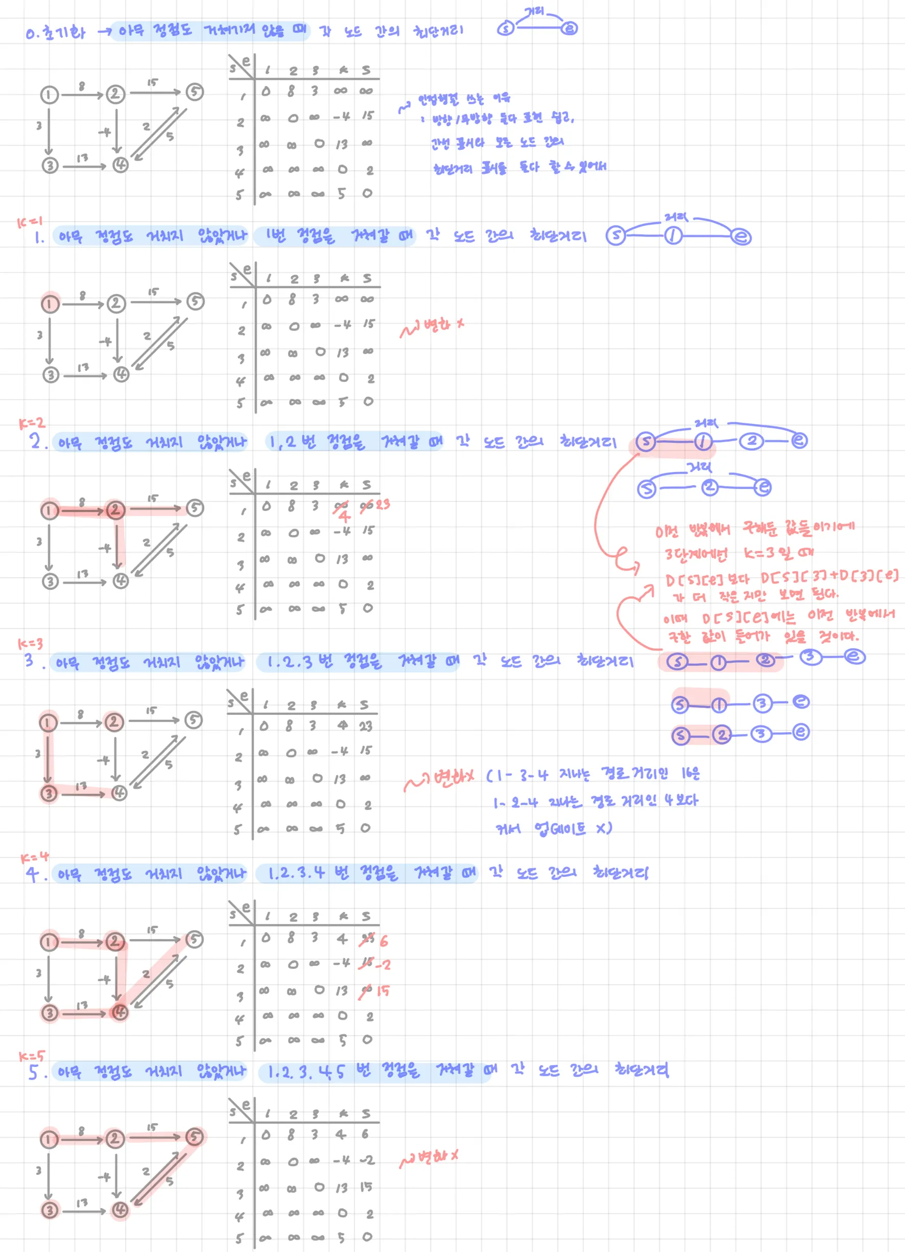 for 경유지 K에 관해 (1~N) # N: 노드 개수