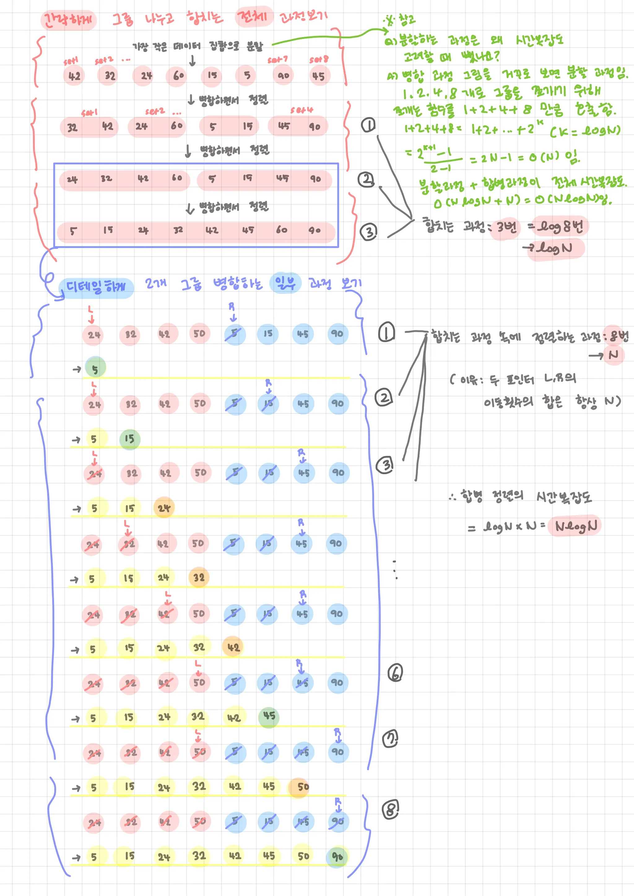 과정 상세히) 2개의 그룹을 병합하는 일부 과정 (중요) (with 투포인터)