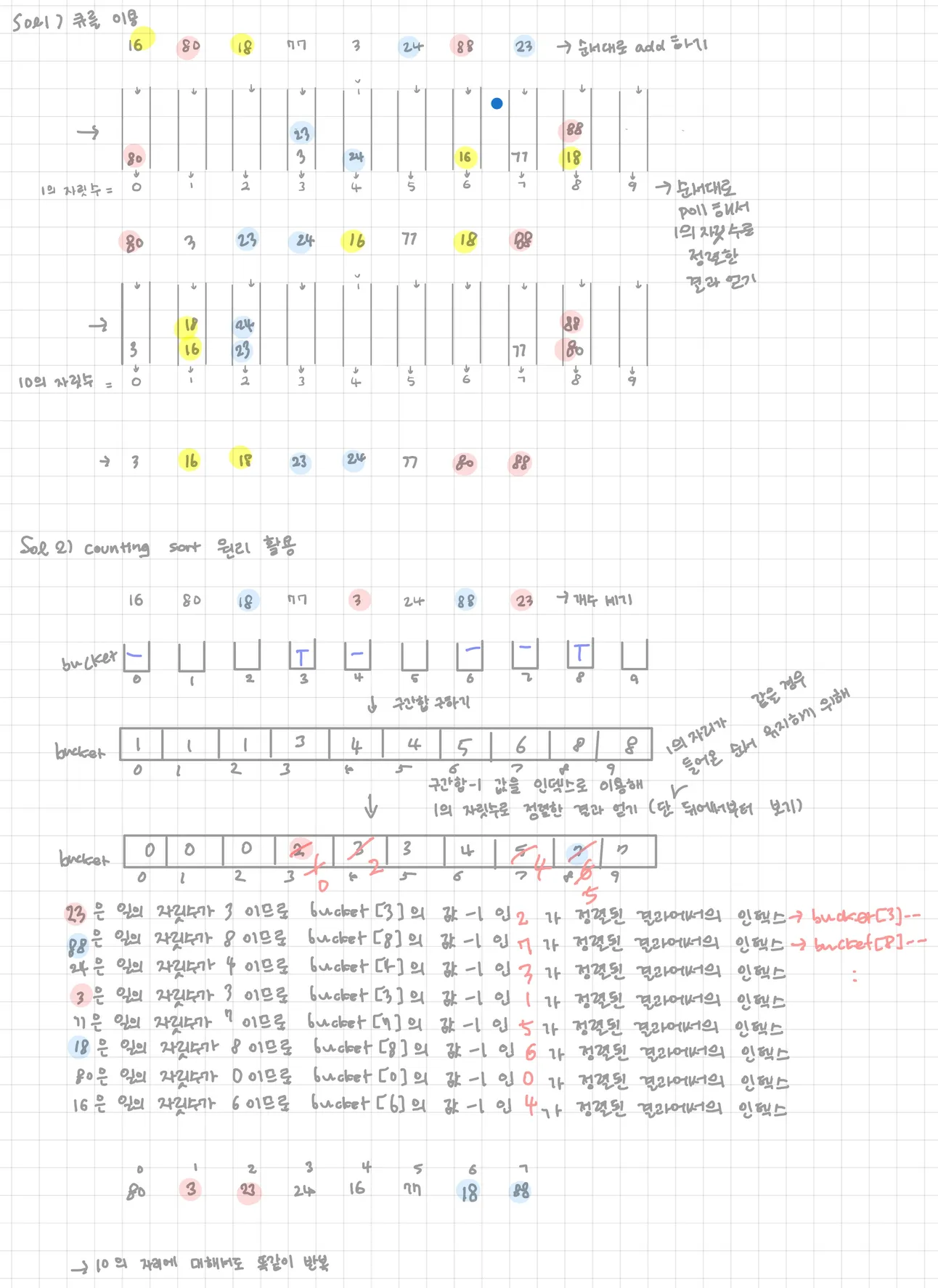 코드 2) 기수 정렬의 메모리 부족 문제를 해결하고 싶다면 계수 정렬을 내부적으로 활용해 구현