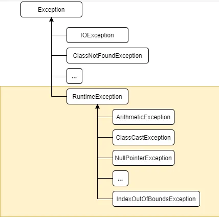 예시) ArrayIndexOutOfBoundException, NullPointerException, ClassCastException, ArithmeticException