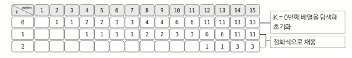 ⇒ P[0][14] (14의 1번째 부모)는 초기값으로 알고 있음