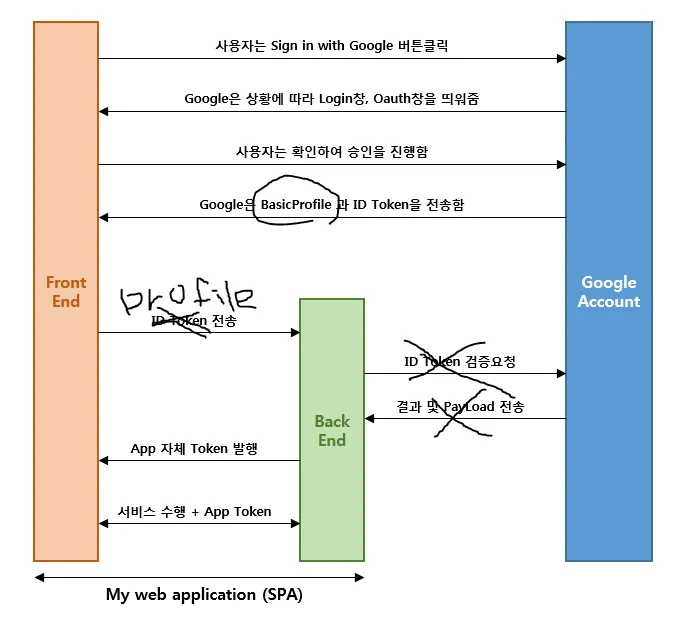 클라가 구글에 로그인 요청해서 id토큰과 profile 정보를 받는데, 여기서 profile정보를 서버에 넘겨줘버리는거죠.