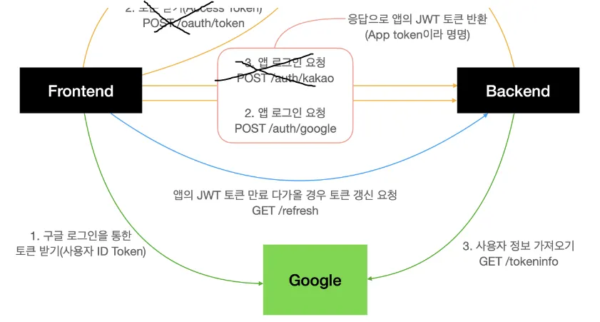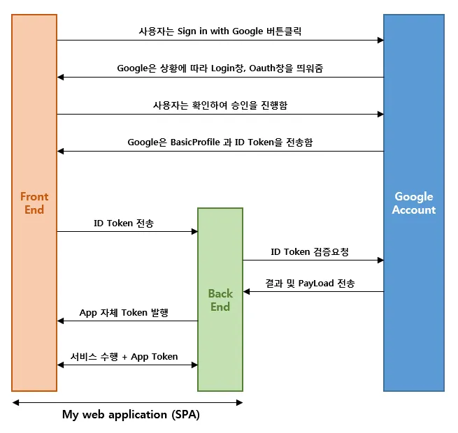 아래 그림과 같이 현재 백엔드 구글 로그인 구현은 구글에 뭔가 따로 요청을 하지 않아요.