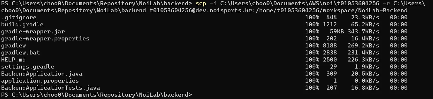 Window terminal 열어서 SCP 전송