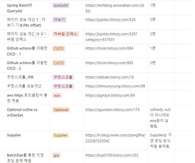 요즘 하는 다른 플젝에선 아래 사진처럼 개인 노션에 레퍼런스 링크만 기록하기보단 주제 중심으로 하나의 포스팅 작성하듯 제 생각들과 함께 작성하고 있습니다. 본인이 왕초보는 아닌 거 같다면 요 방법이 더 나은 거 같습니다! (전 아직 왕초보긴 합니다만,,,)
