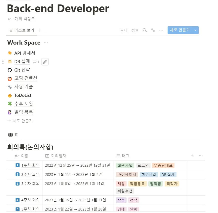 저희 팀 백엔드 노션은 팀 노션이라 링크 공유는 안되고, 사진으로라도 담아왔습니다,,