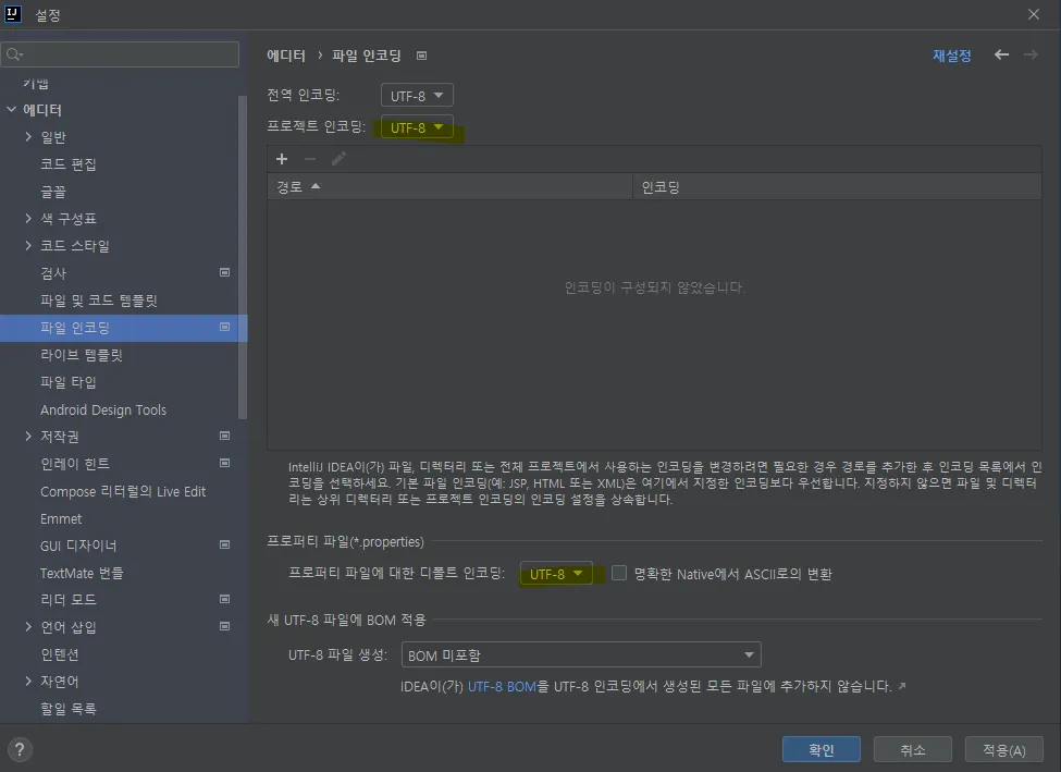 Intellij 한글 깨짐 해결 (unmappable character for encoding x-windows-949)